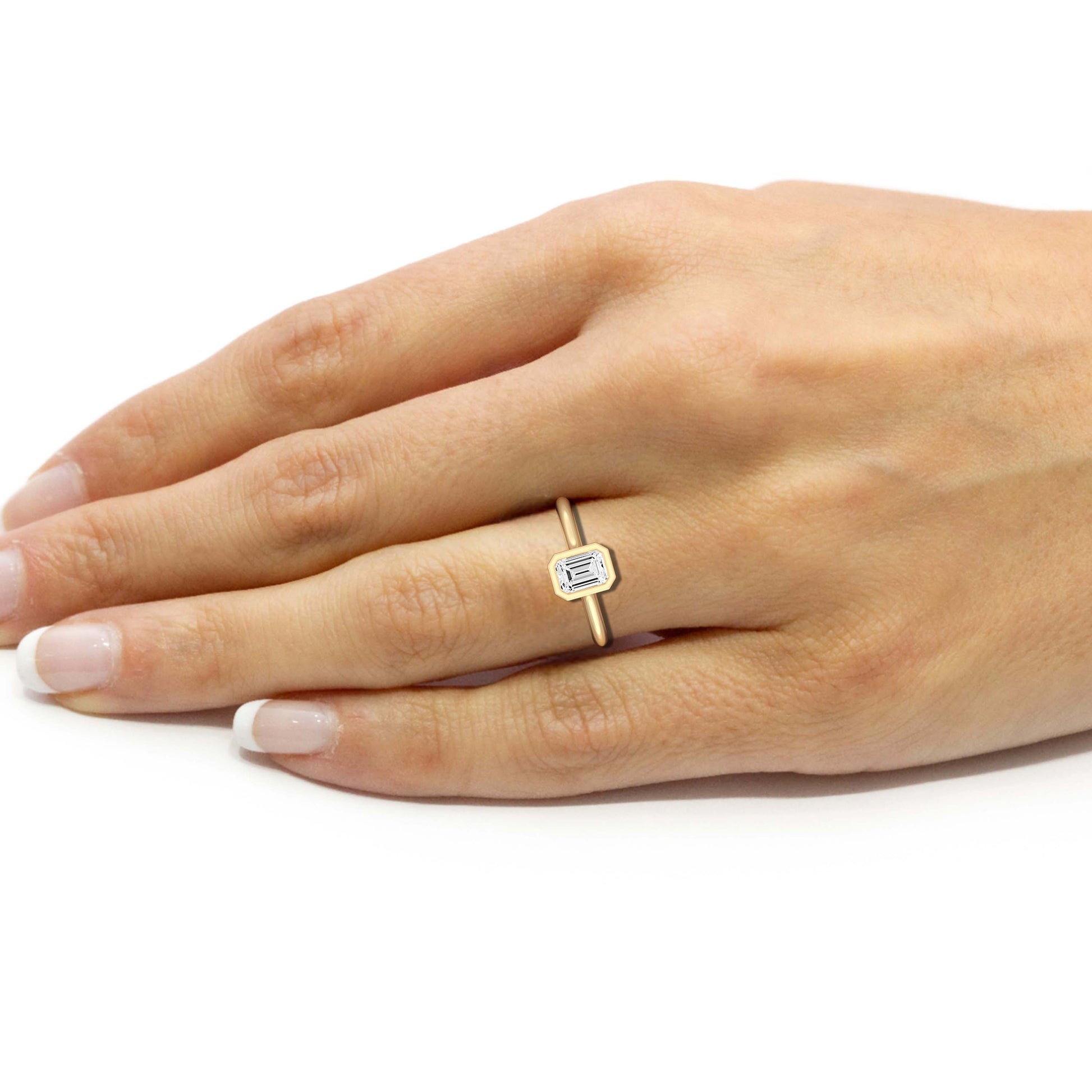 1.00.Carat EMARALD SHAPE Lab -Diamond BEZEL Set Solitaire ring in Gold