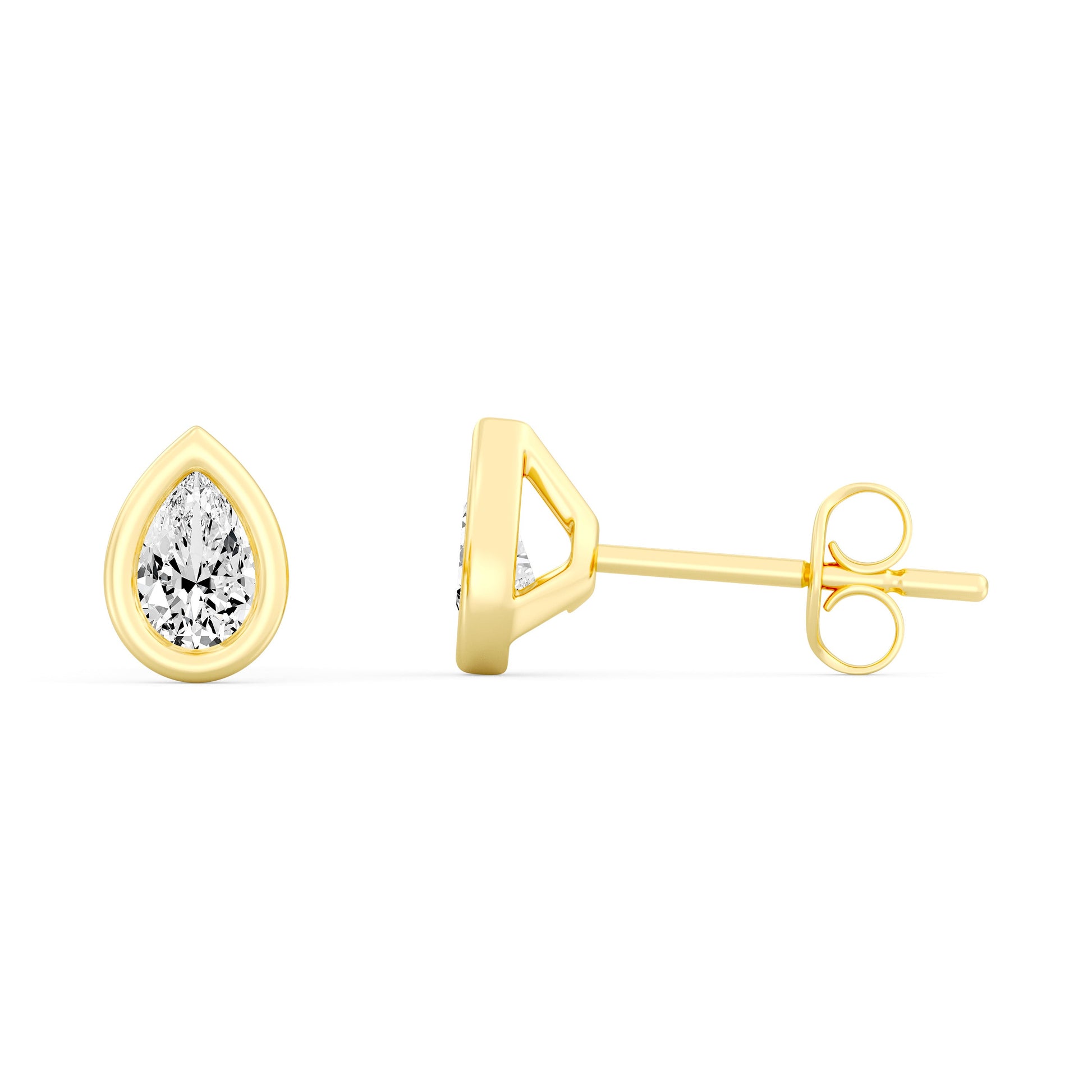 Discover a new level of sophistication with our Pear-Shaped Bazel Set Lab-Grown Diamond Earrings. Expertly crafted in Gold to highlight the brilliant clarity and timeless allure of lab-grown diamonds, these earrings are a stunning fusion of modern innovation and classic elegance..