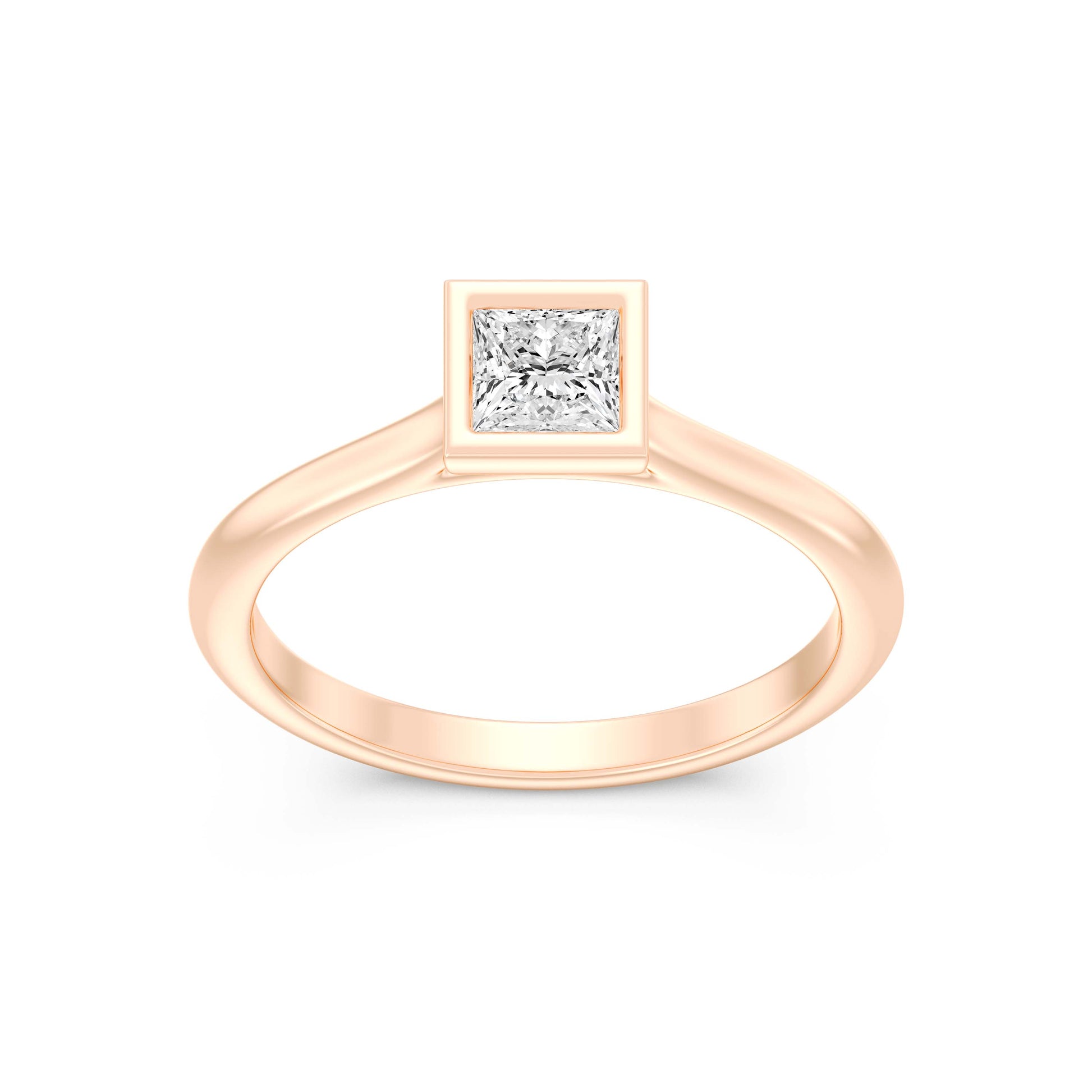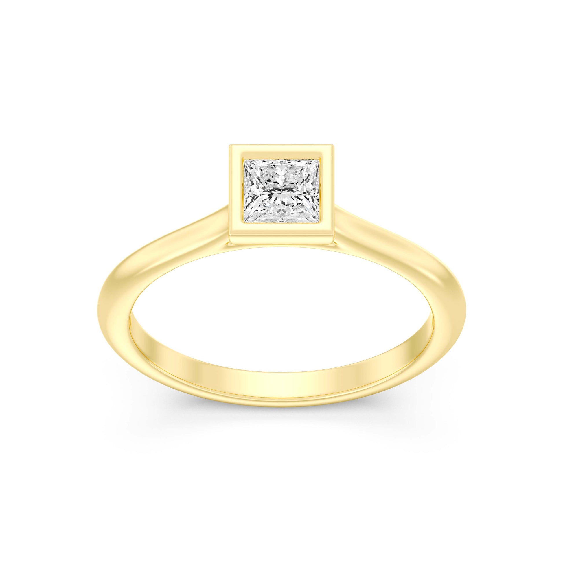 1/2.Carat PRINCESS SHAPE Lab -Diamond BEZEL Set Solitaire ring in Gold