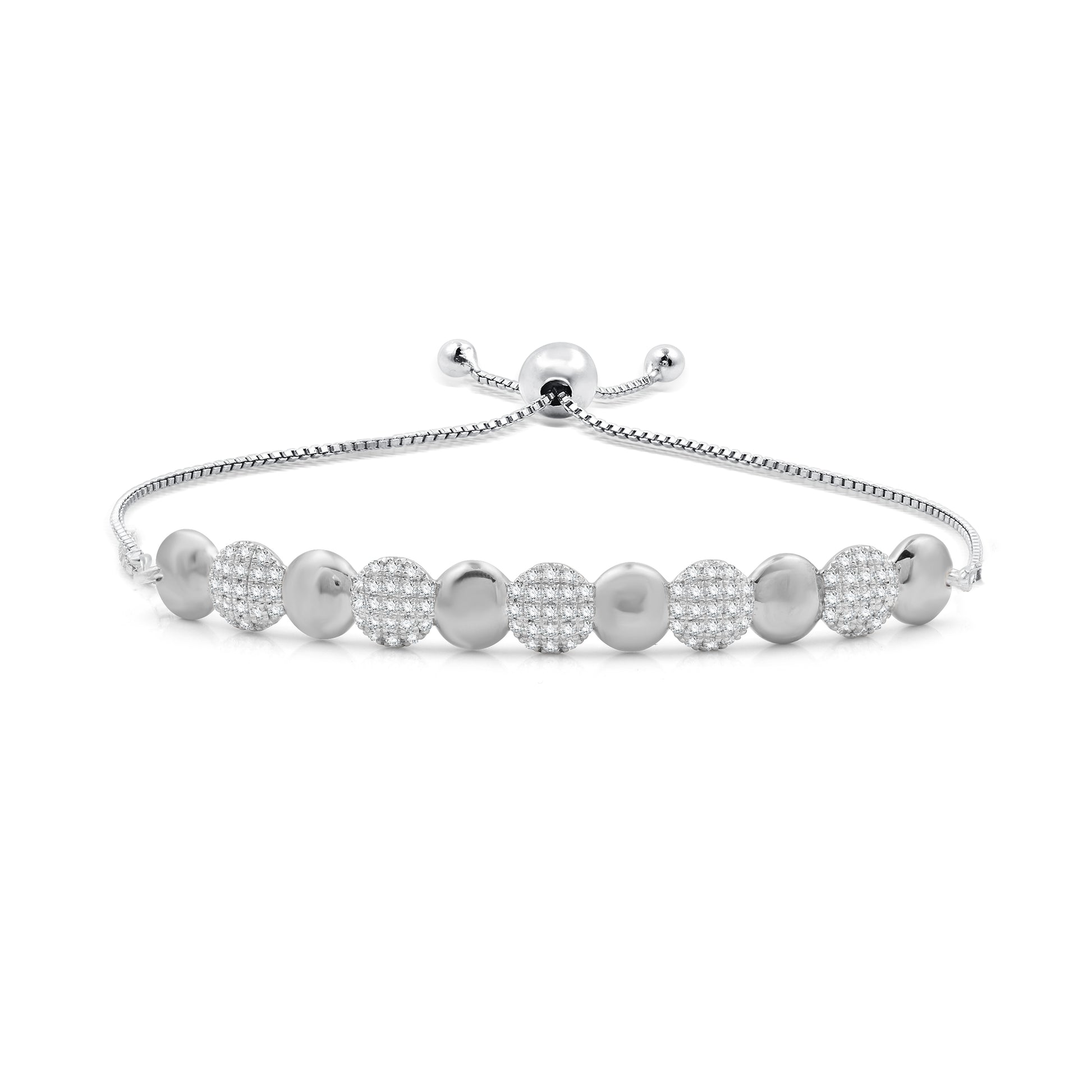 1/2 CTTW Pavé Diamond Ball Bolo Bangle, expertly crafted in 925 sterling silver and adorned with lab-grown diamonds for a luxurious, eco-friendly sparkle. This bangle features a refined pavé-set diamond ball accent that adds a modern twist to a classic silhouette.