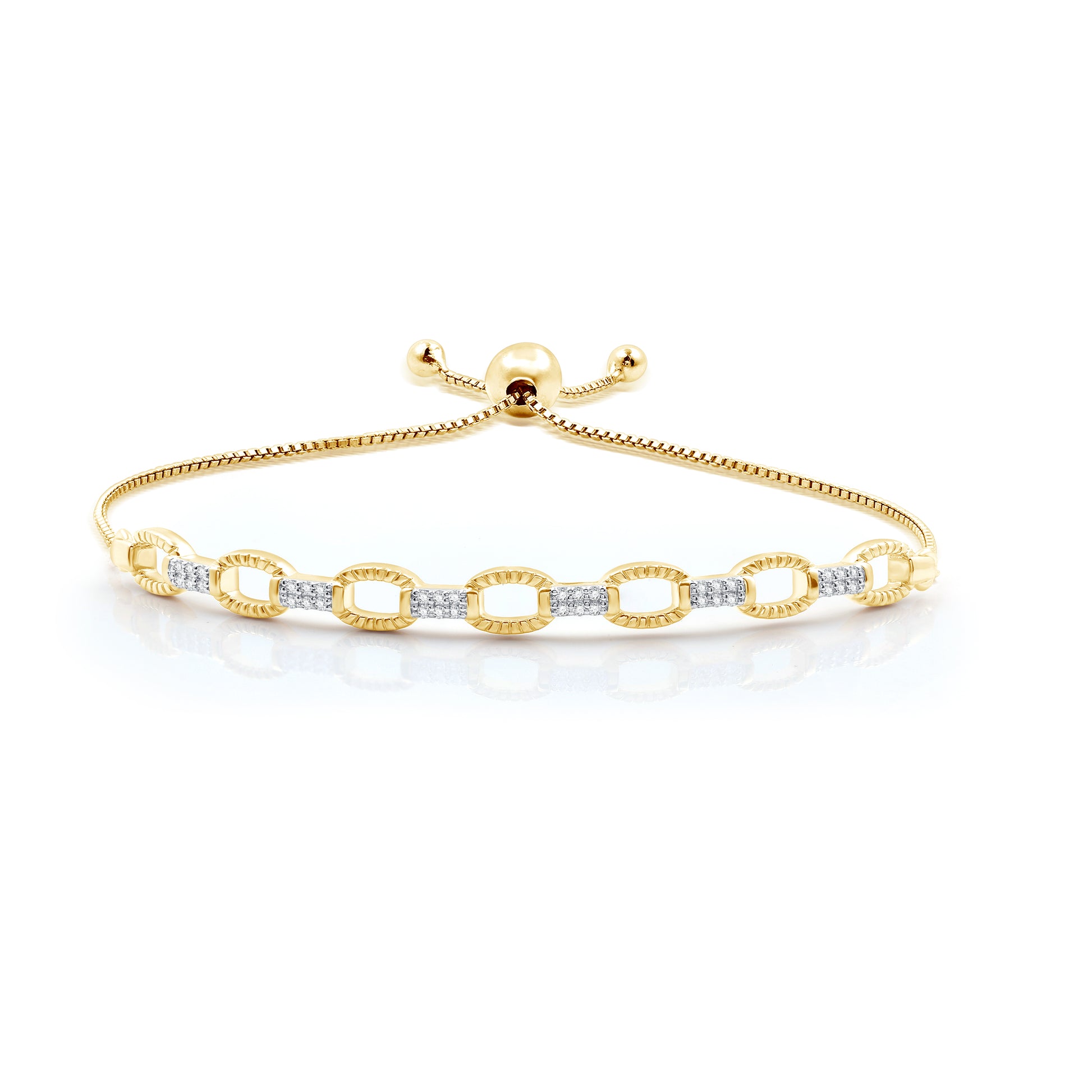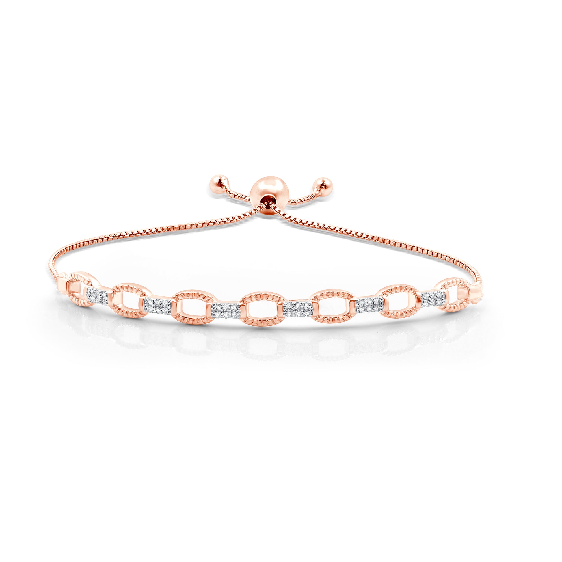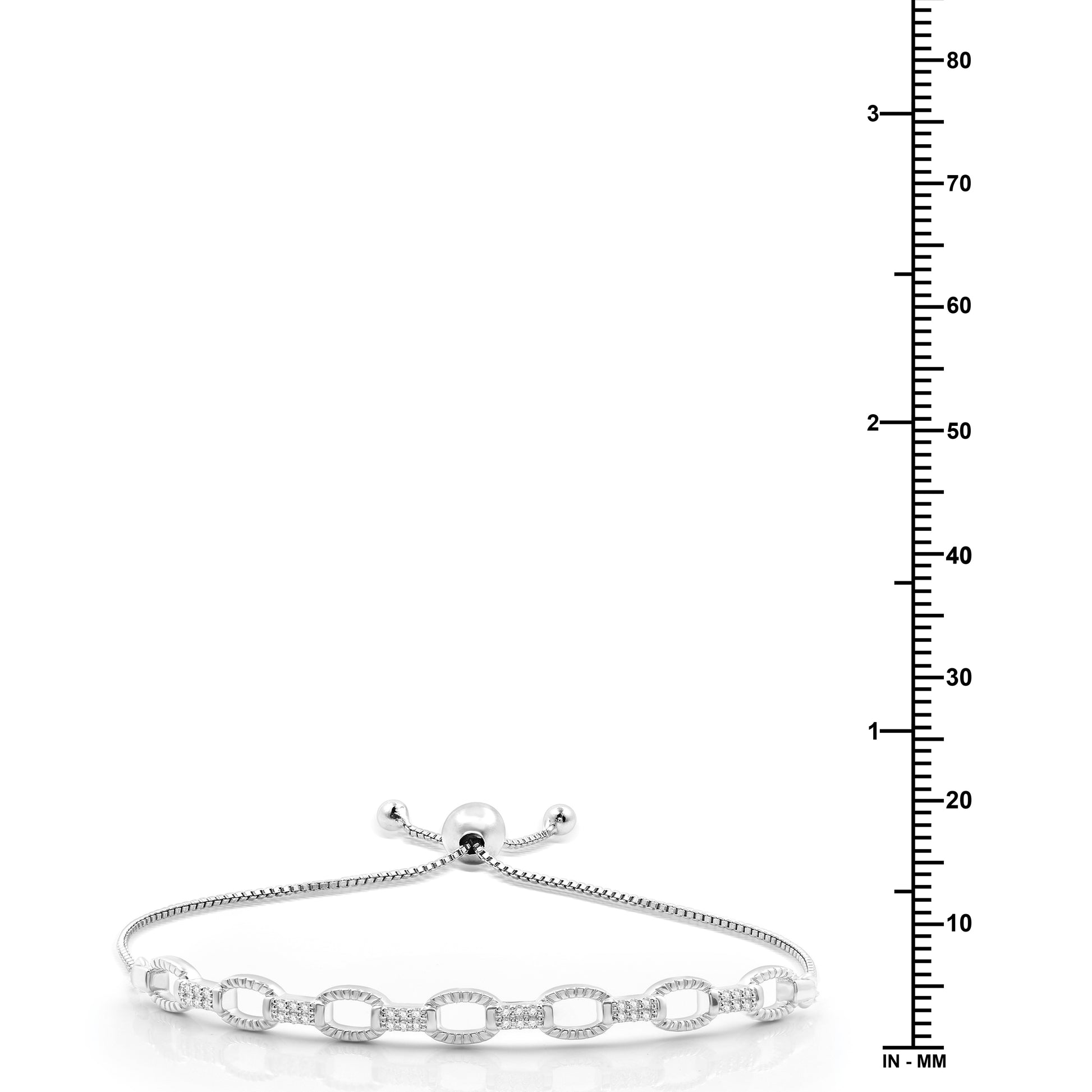 1/6 CTTW Diamond Paperclip Taxure Link Bolo Bangle in Sterling Silver – Adjustable Lab-Grown Diamond Bracelet
