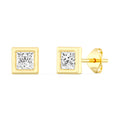 3/4.Carat Princess Cut Lab -Diamond Bazel Set Earring in kt Gold