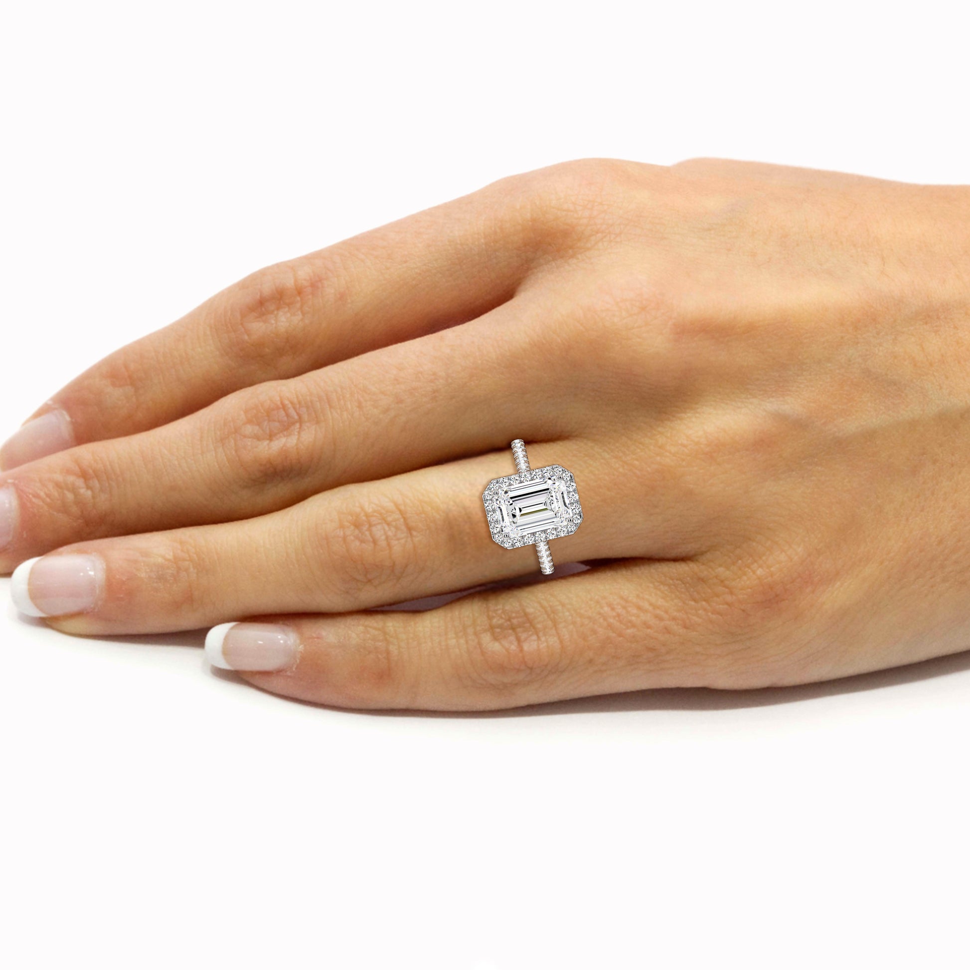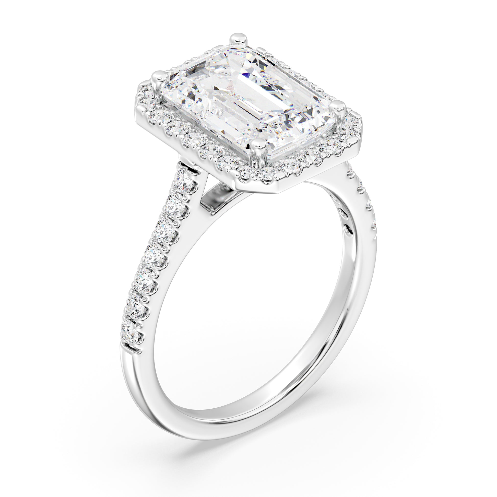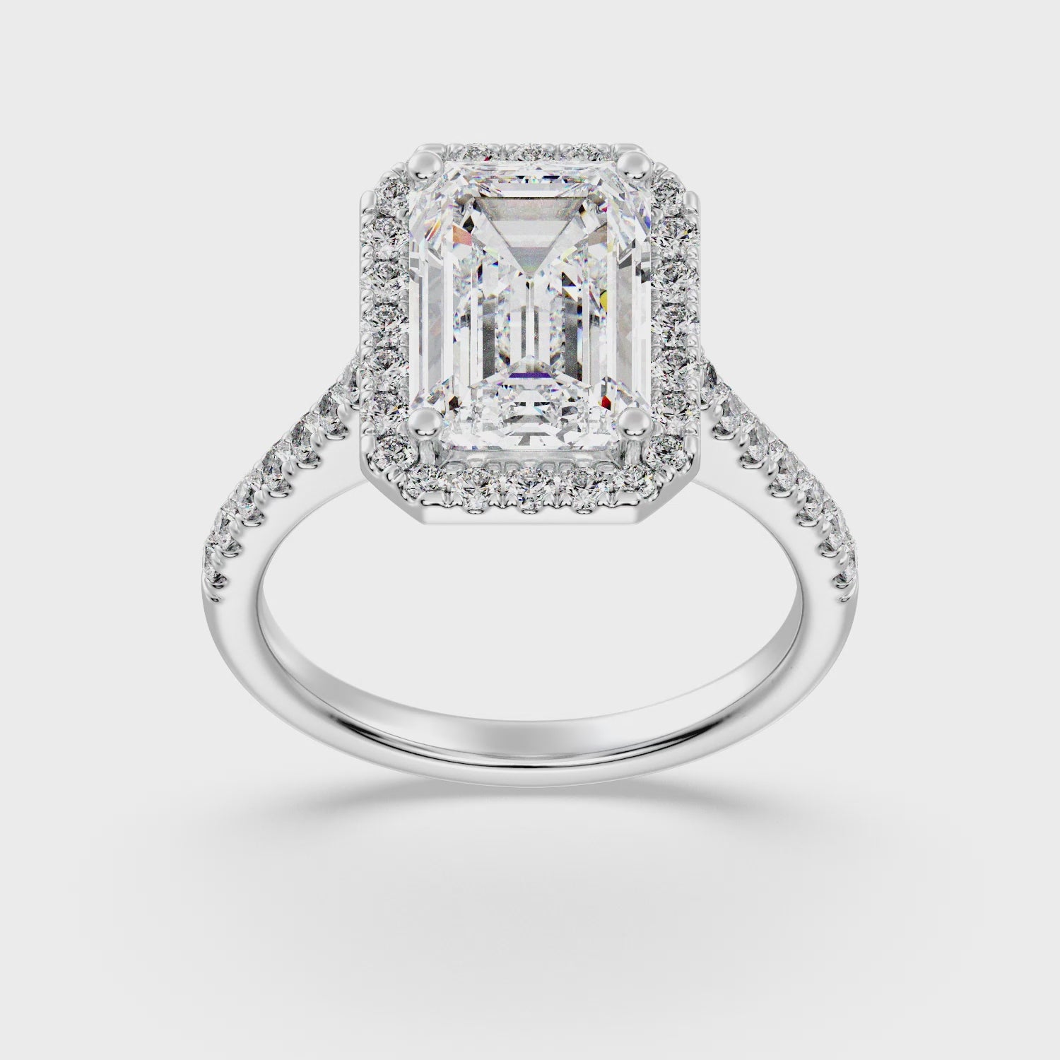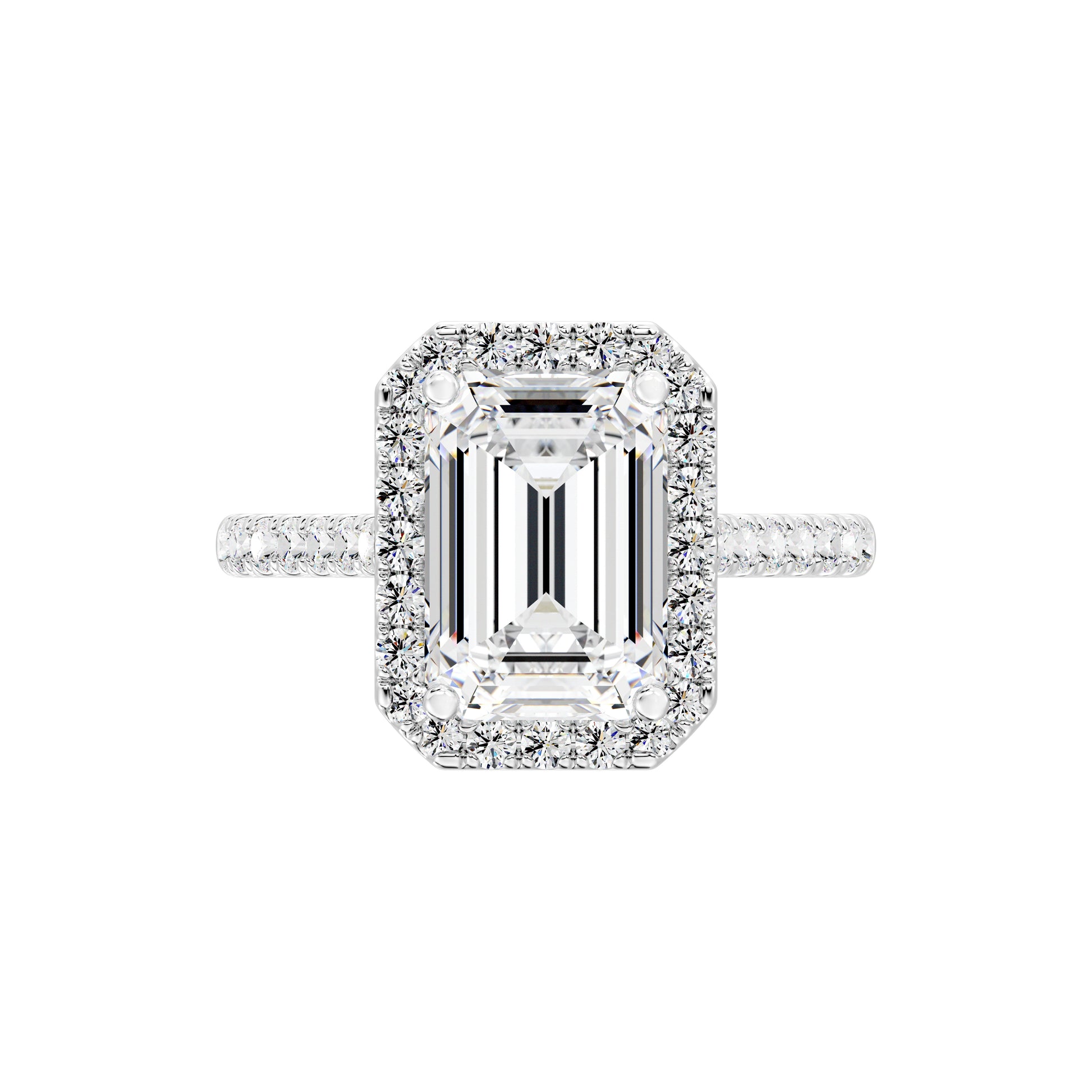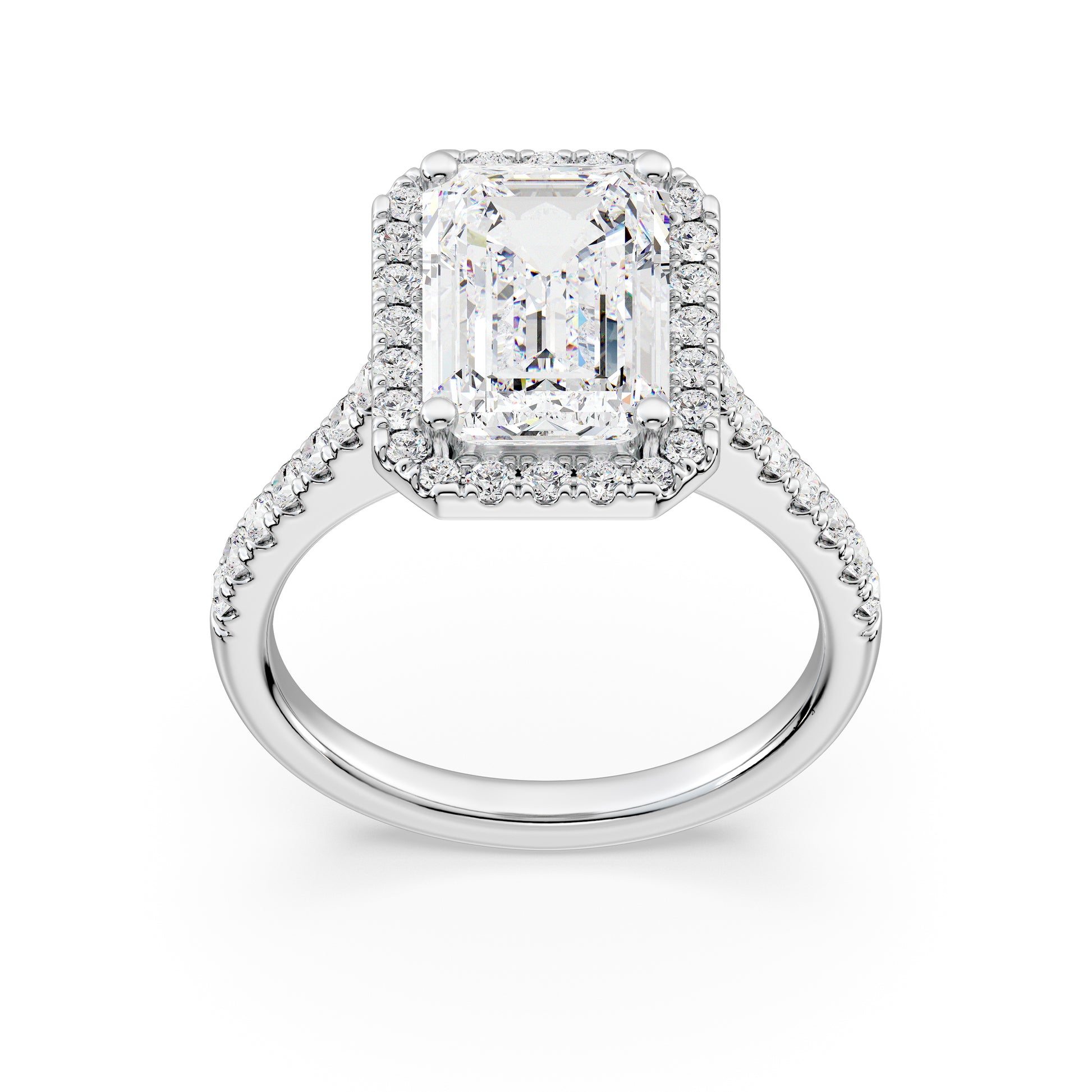 Elegant Emerald Halo Engagement Ring with Tight Halo Design