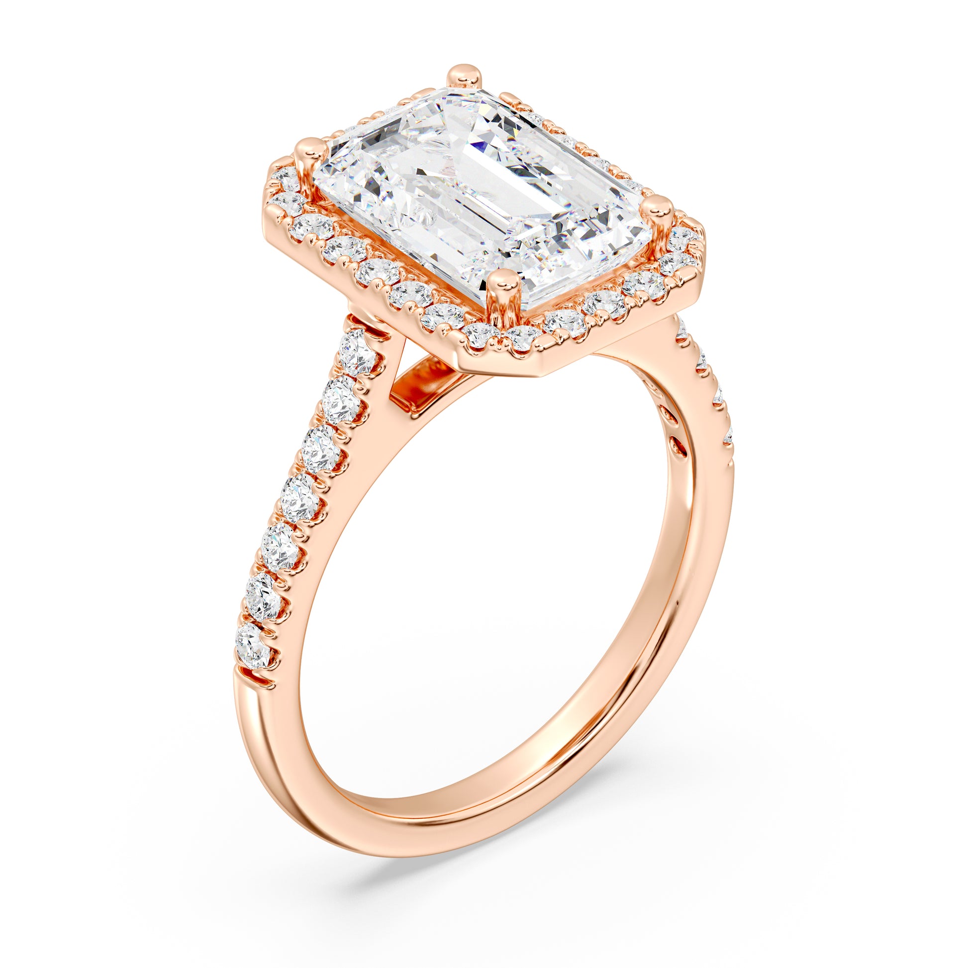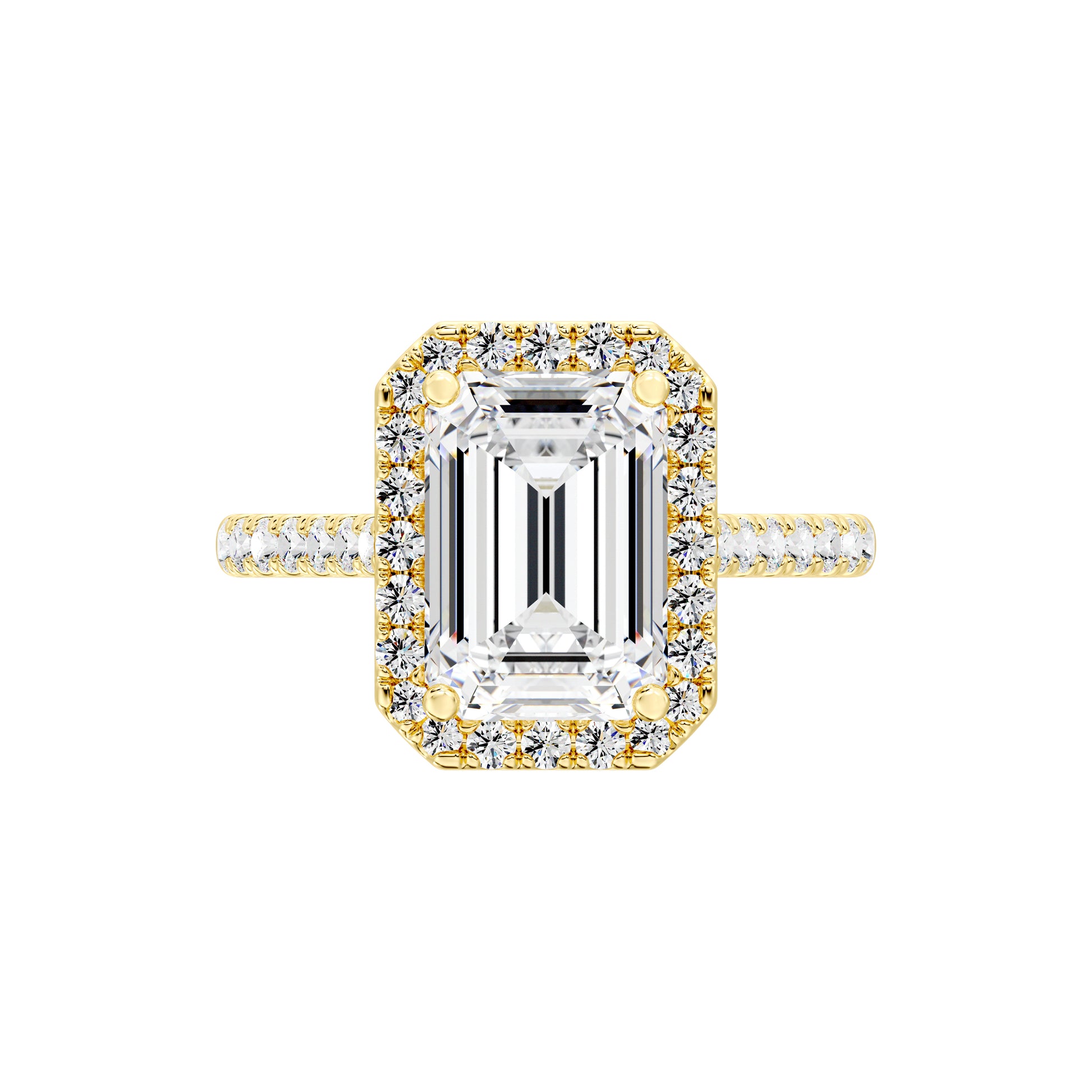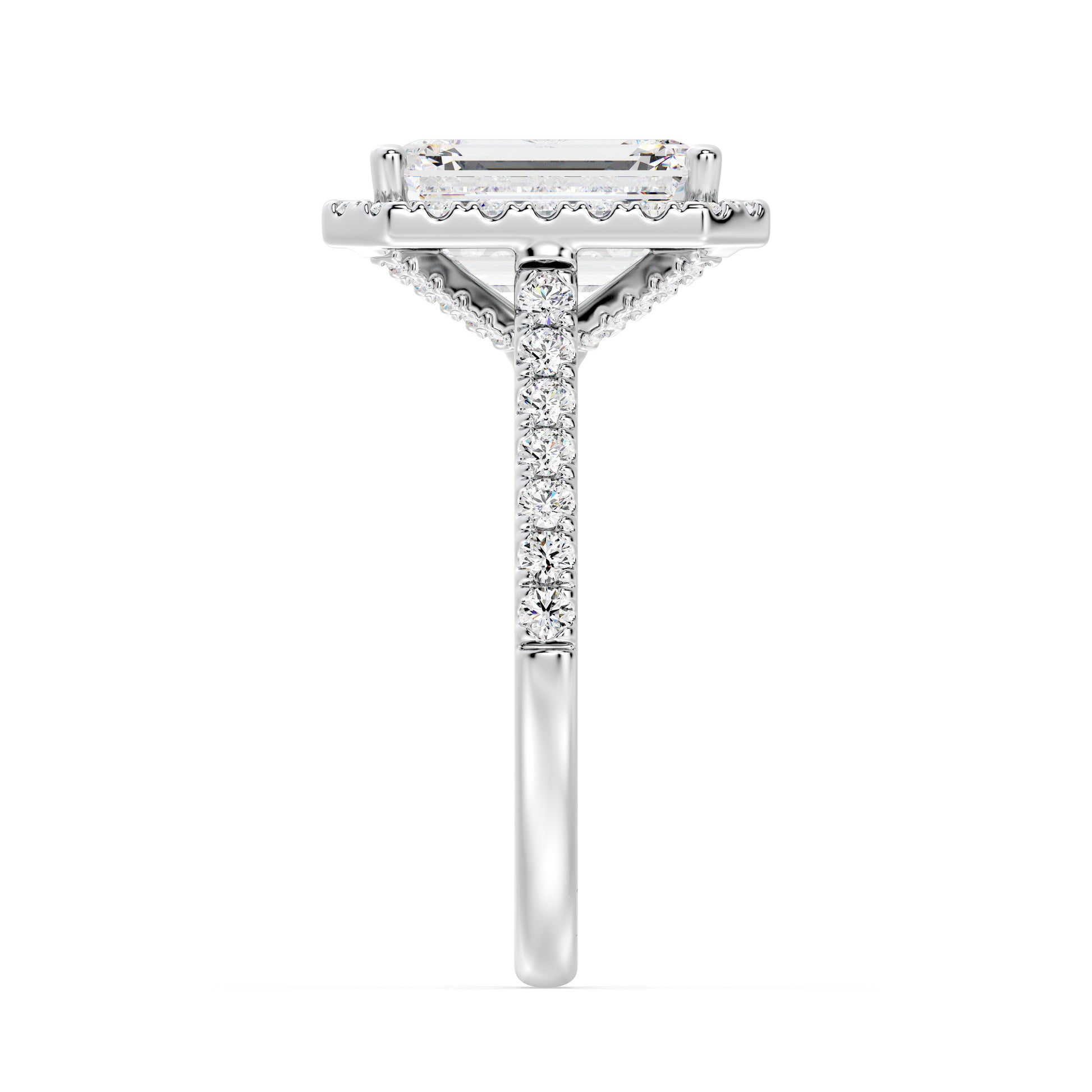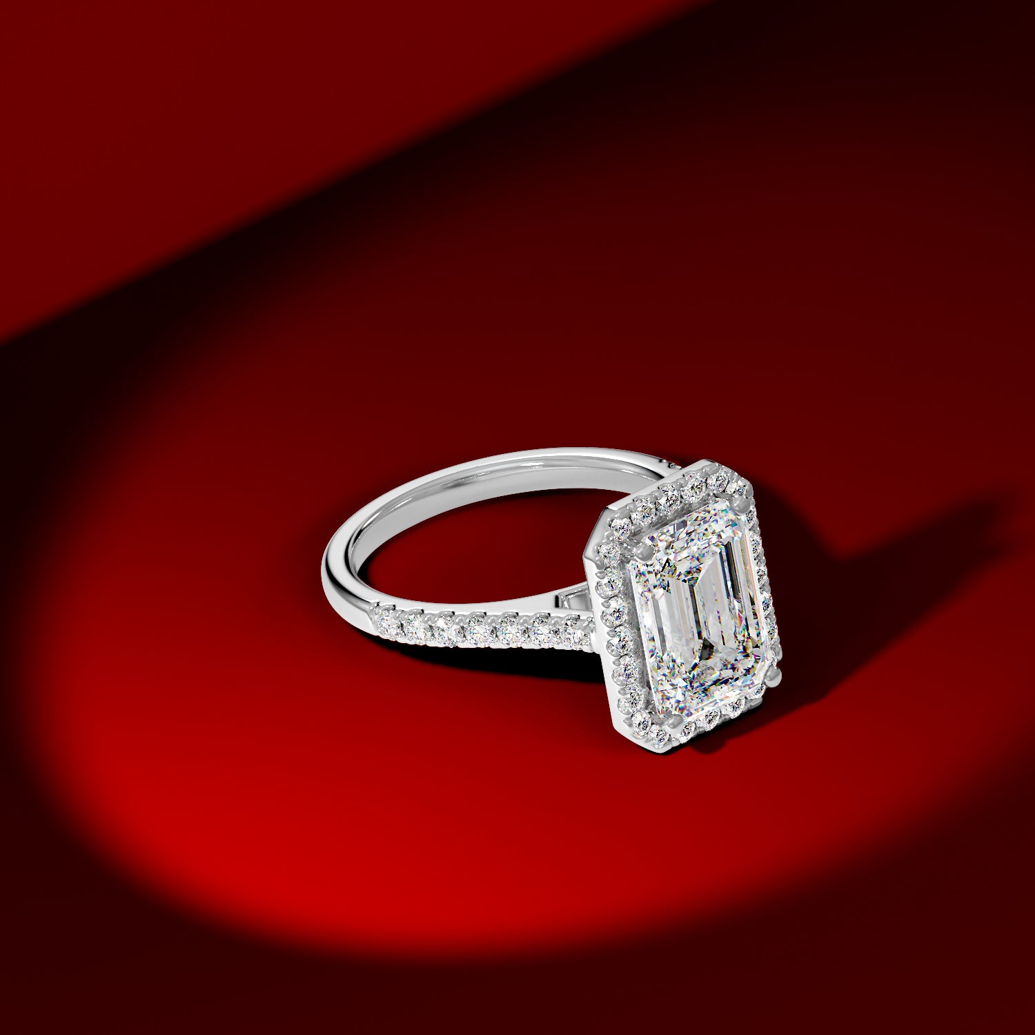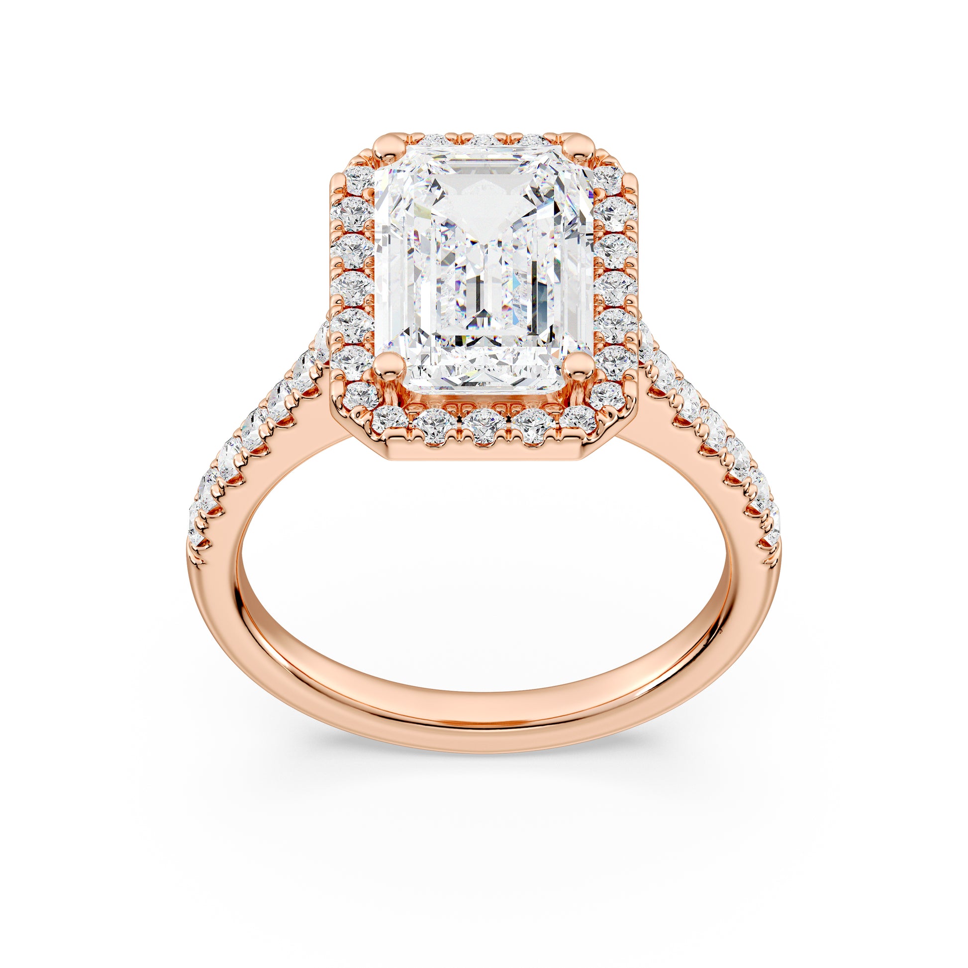 Elegant Emerald Halo Engagement Ring with Tight Halo Design