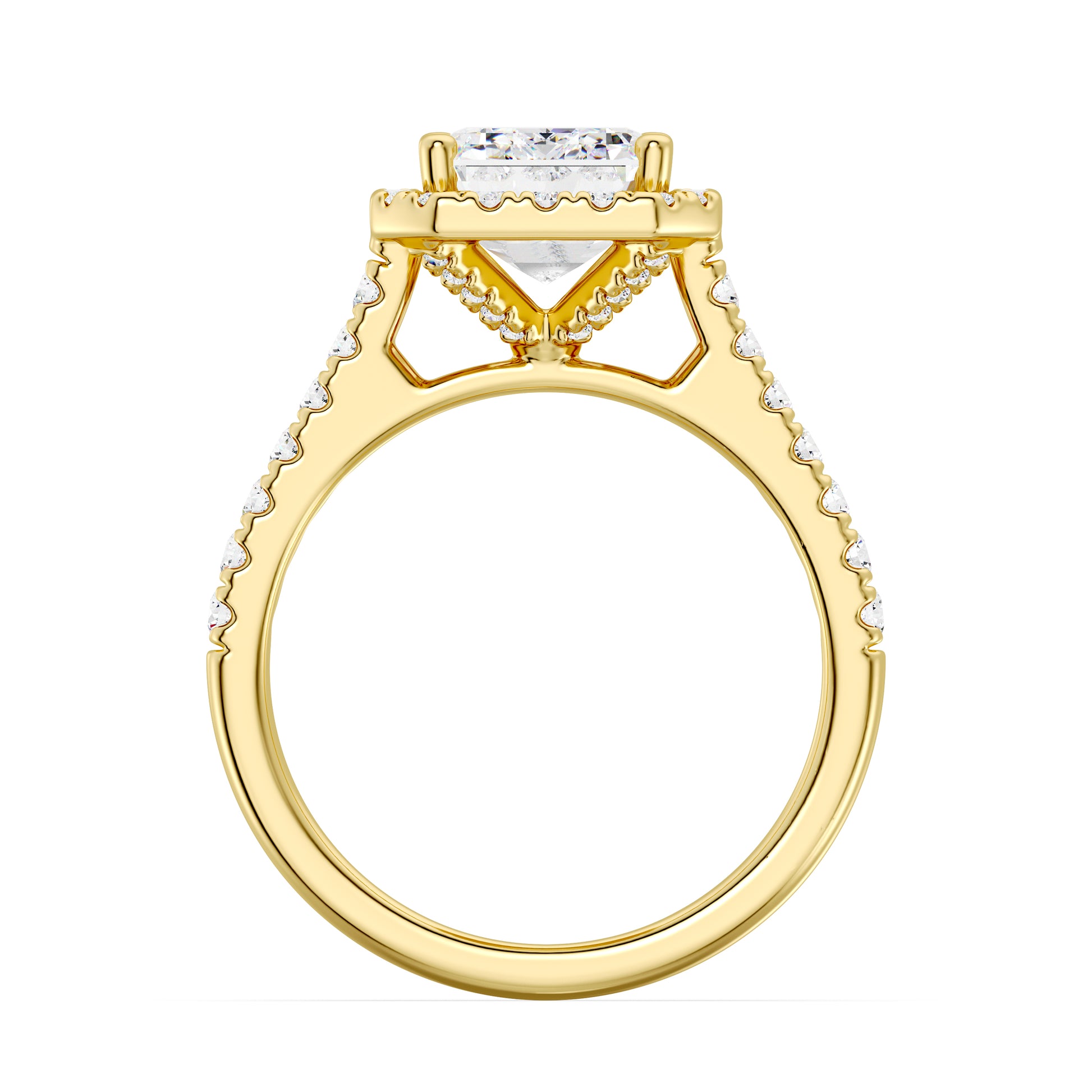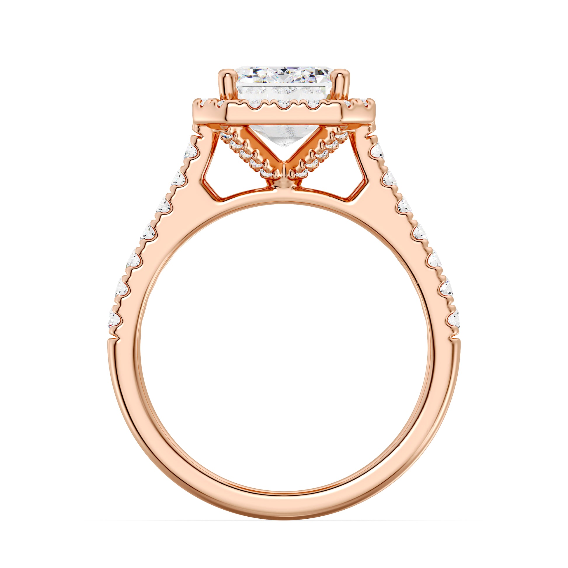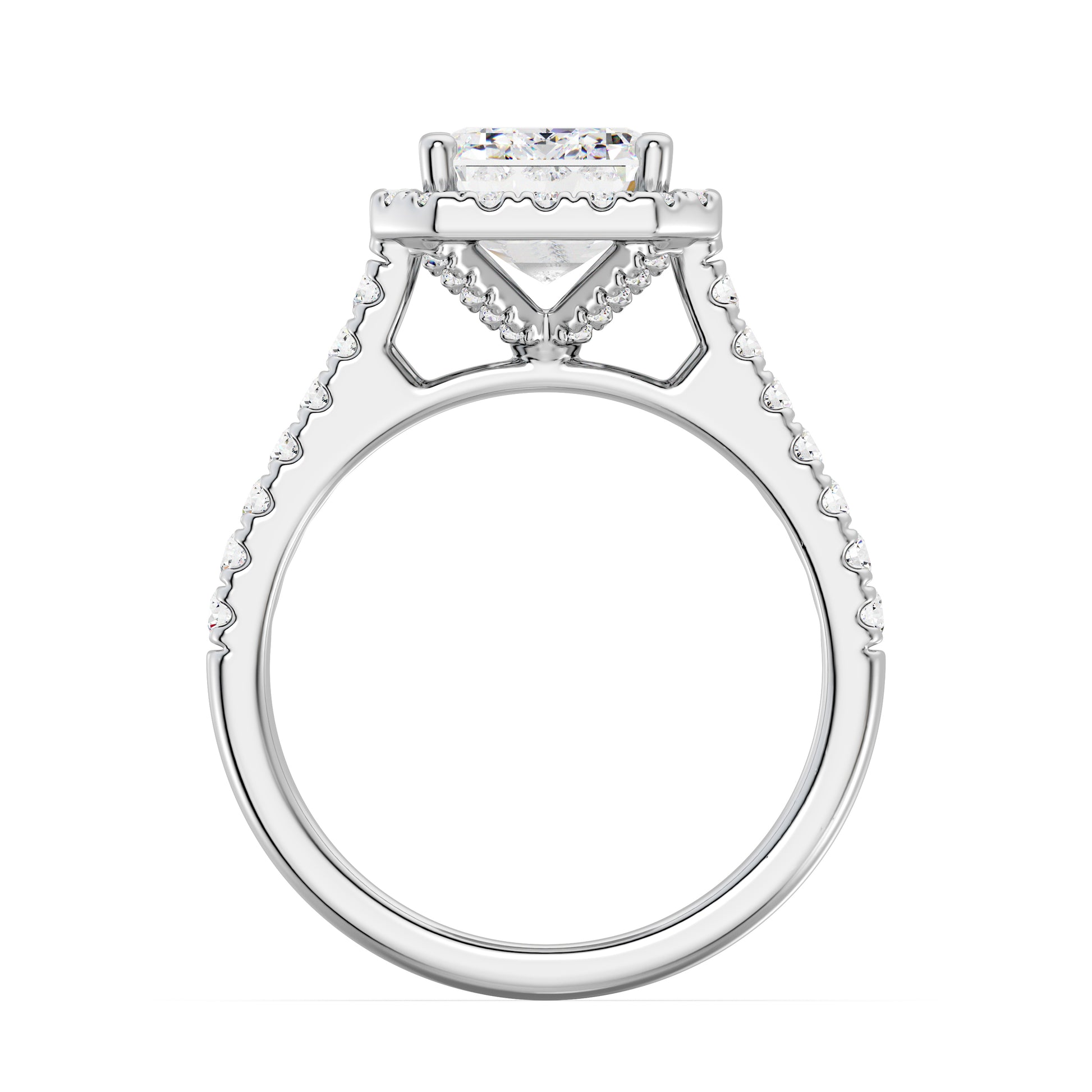 Halo Design: A tight, delicate diamond halo framing the center stone for extra radiance